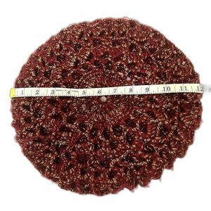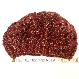 Handmade Slouchy Red & Gold Metallic Knit Beret Acrylic Winter Hat Unisex