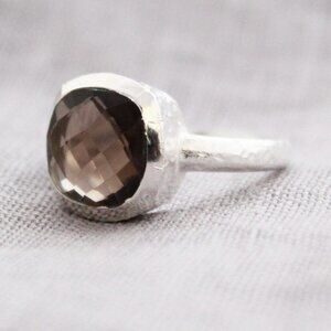 Handmade Smoky Quartz Sterling Silver Ring - Statement Cocktail Ring
