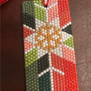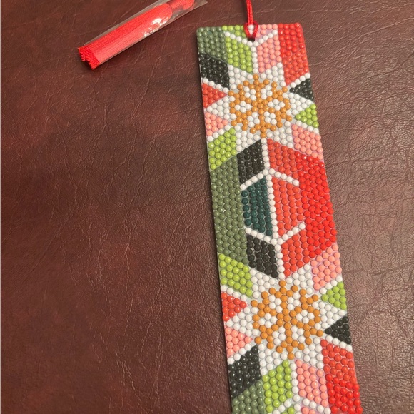 Beautiful handmade beaded bookmark. Features a vibrant geometric pattern. Perfect for book lovers.