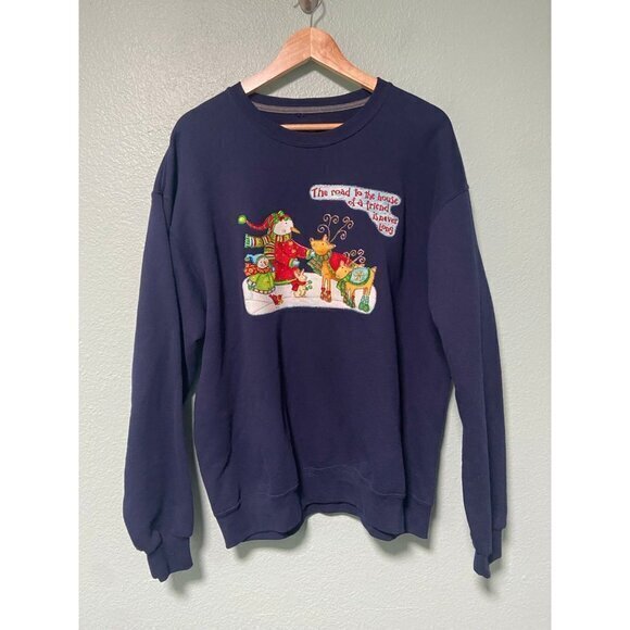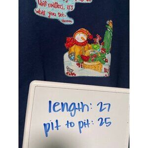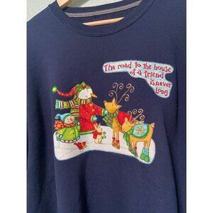 Handmade Snowman Winter Christmas Fruit of the Loom Navy Sweater Unisex Size XL