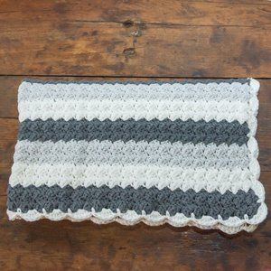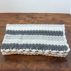 Handmade Soft Crochet Baby Receiving Security Lovey Crib Blanket Gray White Gift