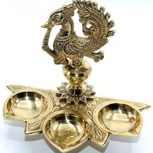 Handmade Solid Brass Peacock Tabletop 3 Tealight Candleholders Centerpiece Decorations | Handmade Lamp, Indian Decor Diya, Indian Homeware