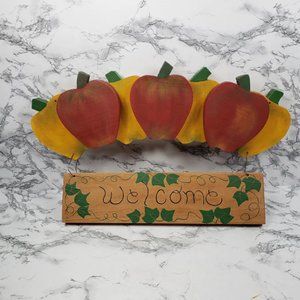 Handmade Solid Wood Apples Welcome Sign Vintage