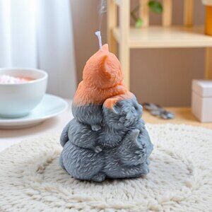 Handmade ✦ Soy Wax Candle ✦ Stacked Cat Trio Pumpkin Pie Cinnamon Scent NWT