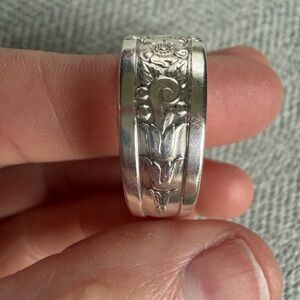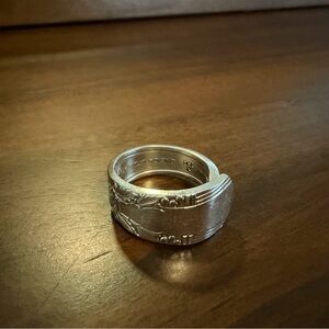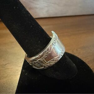 Handmade spoon ring made by me from vintage silver plated spoon! All my jewelry is made from silverware found at estate sales, since this is a used spoon there are imperfections in the metal. Ring is a size 9.