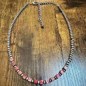 Handmade Square Gemstone Necklace with Navajo Beads 15 to 20 Inches