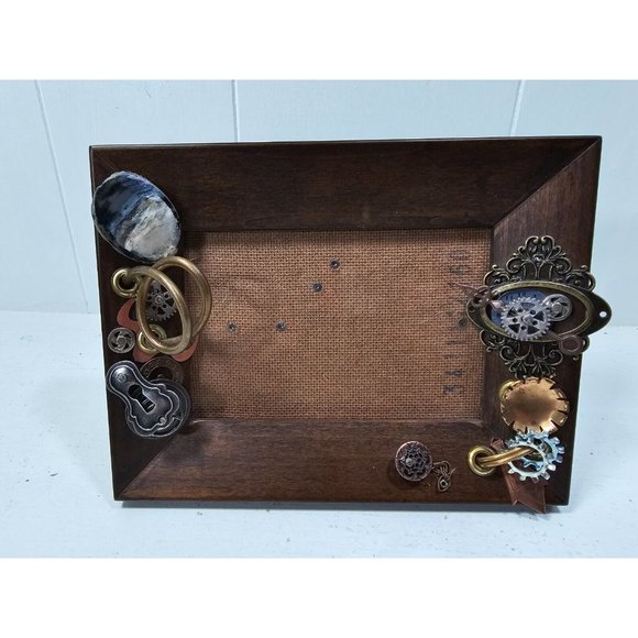 Handmade Steampunk Picture Frame Antique Look 8" X 6" Wood Metal Hanging