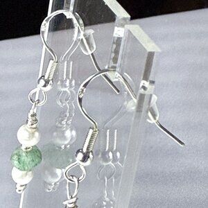 Handmade Sterling Silver Dangle Earrings- Aventurine Pearl Minimalist