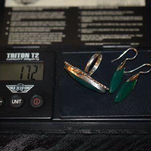 Handmade Sterling Silver Green Onyx Ring and Earrings Set