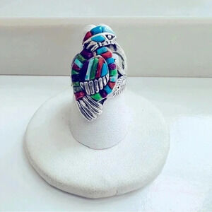 Handmade Sterling Silver & Multi Gem Inlay Bird Ring Size