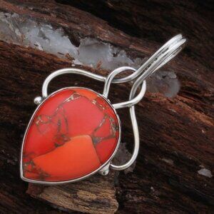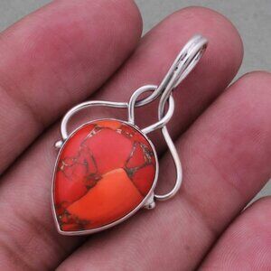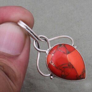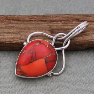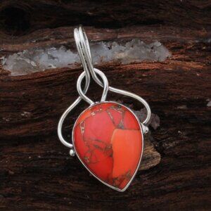 Handmade Sterling Silver Orange Copper Turquoise Pear Pendant
