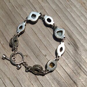 Handmade Sterling Silver Toggle Bracelet with Multi Gemstones and Ornate Detail