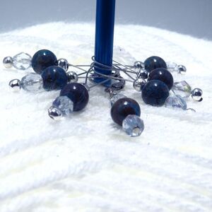 knitting tools, knitting accessories, stitch markers, progress keeper, blue, crystal, handmade