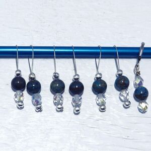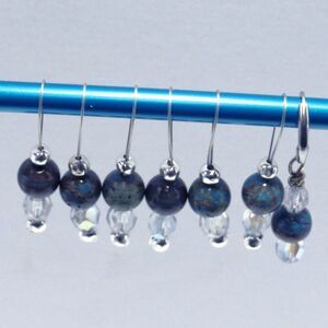 Handmade Stitch Markers w/ Blue Jasper and Crystal Beads for Knitting & Crochet