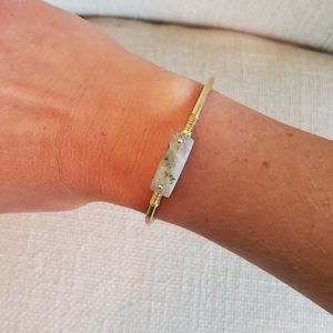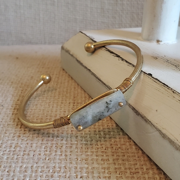 Beautiful mix of gold with a grey stone, this bangle can be paired with other bracelets or on its own!