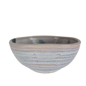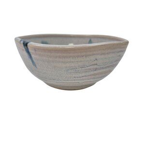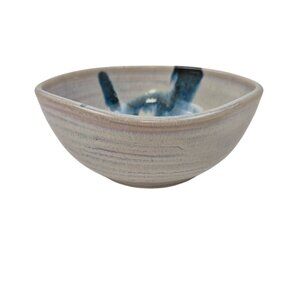 Handmade Stoneware Pottery Bowl Blue Gray Brushstroke Design Small Dish Glazed