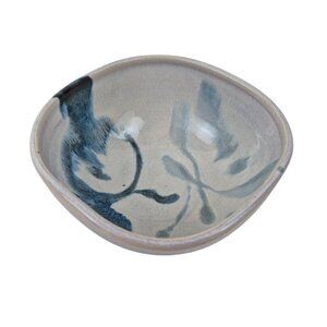 This handmade stoneware pottery bowl features a unique blue-gray brushstroke design. Its small size makes it perfect for serving snacks, dips, or as a decorative piece. Each bowl is glazed for a smooth finish, ensuring durability and charm in every use.