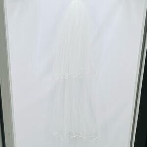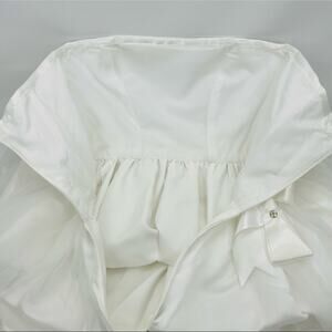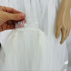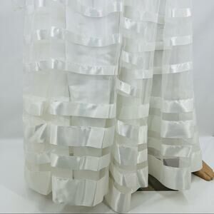 Handmade Strapless White Gown. Fully Lined. Back zipper. Boned Bust. Ribbon Accents on Hem, Waist and Bust. Bow on back. Made with quality fabric, feels heavy and luxurious. Comes with Double layer Vail.