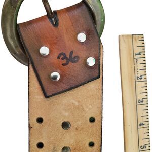 Handmade Studded Leather Wide Leather Belt Western Belt Antique Brass Sz 36