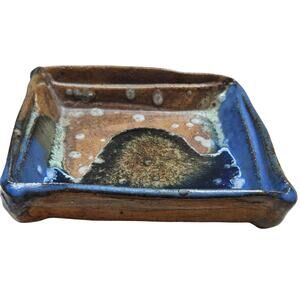 Handmade Studio Pottery 5 inch Square Dish Brutalist Signed Trinkets Change