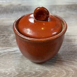 Handmade Studio Pottery Lidded Jar – Rust Red Glaze by Marilyn – 2.5"x3"