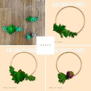 Bring a touch of greenery and modern charm into your space with this set of handcrafted succulent hoop wreaths by KW Crafty Finds. Featuring realistic faux succulents and greenery arranged on minimalist gold hoops.