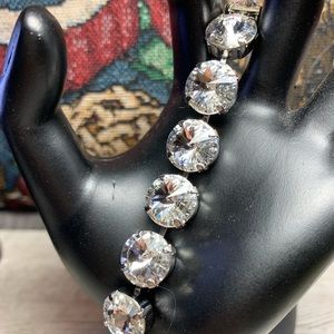 Handmade Swarovski “Clear Crystal” Cup Chain Bracelet. This beautiful bracelet is made with the most versatile of the Swarovski Stones, “Crystal”. Resembles a diamond cut with 16 more facets that meet in the center for more intense sparkle and clarity. Finished with Silver Plated Cup Chain and Lobster Clasp. This Crystal goes with anything you may choose!!! Approx 7 1/4”