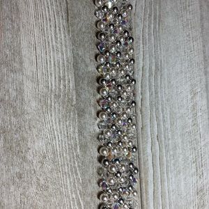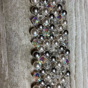 Handmade Swarovski Crystal “Ice” Bracelet 7 3/4 x 1 1/4” With 2 Strand Sterling Silver Plated Magnetic Tube Clasp Handmade with 6mm 5000 Crystal Swarovski Platinum and Cream Pearls and 6mm 5328 Xilion Swarovski Crystals Crystal and Crystal AB 💯 Authentic and Stunning MAGNETIC CLASP DO NOT USE WITH PACEMAKER