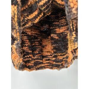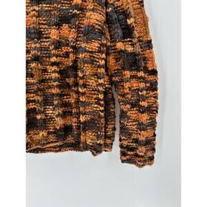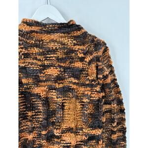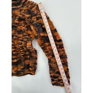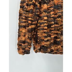 Handmade Sweater Womens Small Orange Black Chunky Knit Pullover Mock Neckline