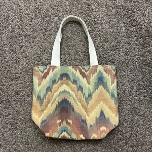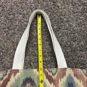 Handmade by me! See photos. Fabric shows natural wear. Shell fabric is from recycled tapestry fabric and liner is from scrap fabric. Handle is from a karate belt. Size measures 9.5x6x13 inches (Width, Depth, Length). Please refer to measurements for accurate fit.
