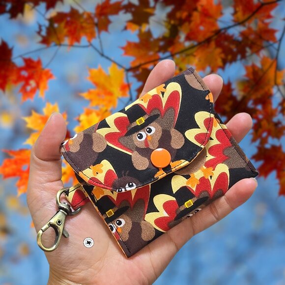 Handmade Thanksgiving Turkey Card Wallet with Keyring | Mini Wallet Bag Charm