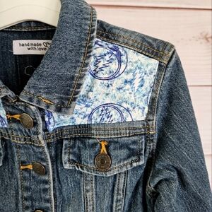 Handmade The Grateful Dead Denim Trucker Jacket in Blue and White Sz 6 NWT