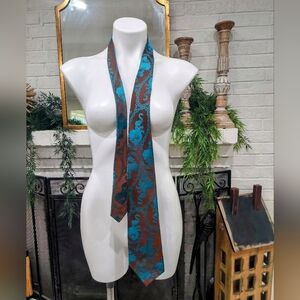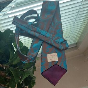 Handmade Tie Teal Blue Chain Brown Dragon Classic USA Made Luxury Necktie. Beautiful addition to a tie collection. Superb condition. Pop of color for the classic white dress shirt. Please see photos for details