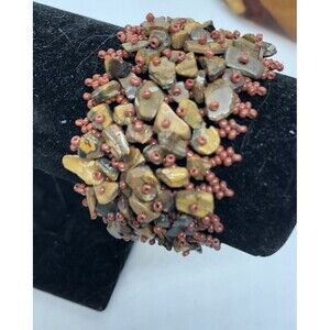 Handmade Tigers Eye Chips 2 Wide Bracelet 7 Long Healing Relationship.