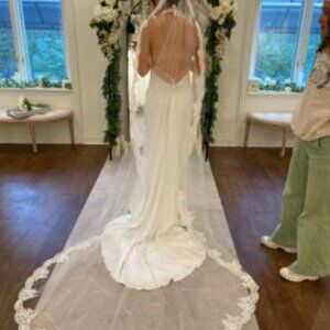 This Italian handmade Toni Federici veil is retailed at $1,300 due to its high quality, Luxury Italian Brand, and well, it is gorgeous! I purchased this veil for my wedding in September 2024 but ended up getting a less ~scandalous~ dress than what you see photographed, so I had to sadly get a new veil to match my new dress! As a young newlywed, $1,300 is a lot to lose, so I am trying to sell it at a discounted price to get some of that back!