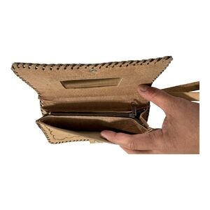 Handmade Tooled El Salvador wallet has lots of storage and inside mirror.