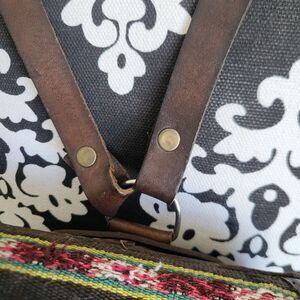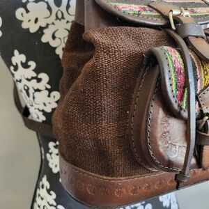 Handmade Tooled Leather and Canvas Crafted Southwestern Stitched Mini Backpack