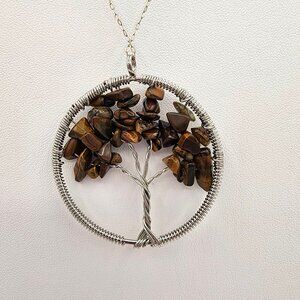 This Tree of Life pendant, featuring genuine Tiger's Eye stones and intricate silver wire wrapping, offers a unique, nature-inspired piece of wearable art.
