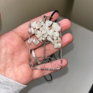 Handmade Tree of life pendant with snow quartz chip beads and silver tone wire