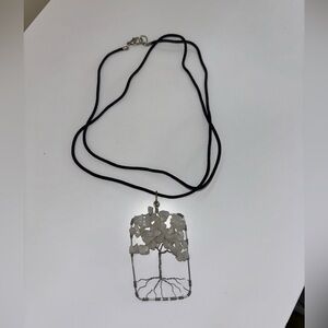 This pendant is made of silver toned wire and snow quartz gemstone chip beads. The wires used to make the pendant are of size 18 ga (for the frame) and 26 ga (for the woody tree parts and coiling). The white snow quartz chip beads are used to make the leafy part of the tree.