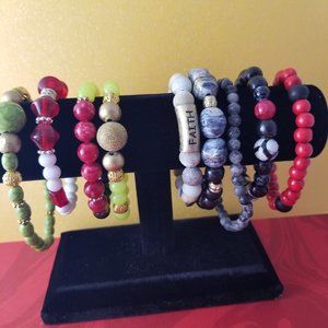 Handmade Trendy Fashion Stretch Bracelets (Set of 9) Designs for Layering, and for everyday wear from day to evening and gifting. B-20024-B