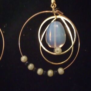 ❤️ Handmade Triple Hoop Pearl & Black Stone Dangle Earrings With Opalite Drop