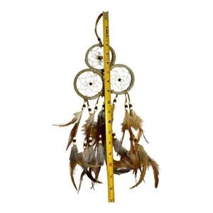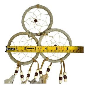 Handmade Triple Ring Dreamcatcher Feathers & Beads Southwest Genuine Vintage