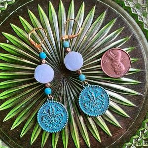 Handmade Turquoise, Amazonite & Patina Dangle Earrings - Boho Earrings - OOAK