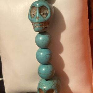 Handmade Turquoise Resin Skull Bracelet With Accent Beads