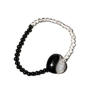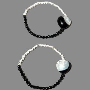 🆕 Handmade Tuxedo Agate Heart Bracelet | Onyx & Czech Glass | Stretch | 2 Sizes