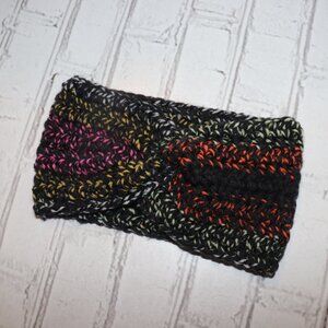 Handmade · Excellent condition Knitted with variegated yarn Twisted front design · Soft stretch fit Multicolor: black, green, orange, purple & white