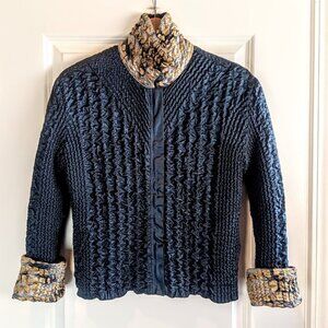 Measures 21" long from back neck seam, 40" pit to pit, 23" sleeve from shoulder seam.