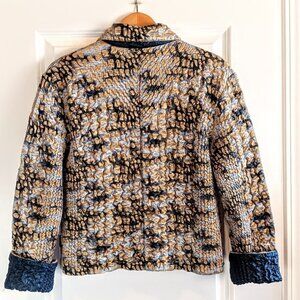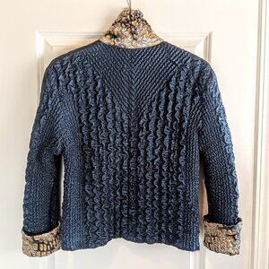 Handmade UBU Slate Blue Grey Tan Reversible Full Zip Crinkle Puffer Jacket