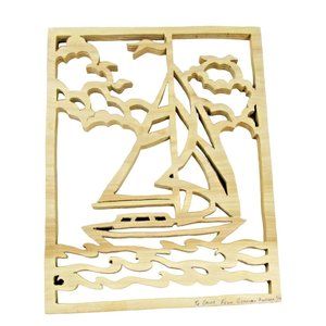 Handmade Unfinished Raw Scrollsaw Sailboat Wood Picture Decor